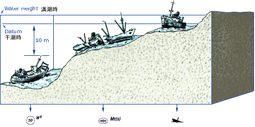 危険な沈船、水深不明 |