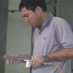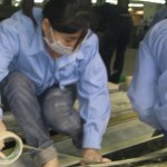 ベトナムの職人は、ジグを自分で工夫して作業を進める。
