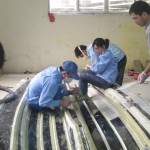 Zen15のコクピットフロアーとシート面には、全面にノンスリップのパターンをゲルコートで浮き出させる。そのために、木型にはあらかじめ母型となるノンスリップ面を作り付けておかねばならない。精度が必要だし、失敗が許されない作業だ。