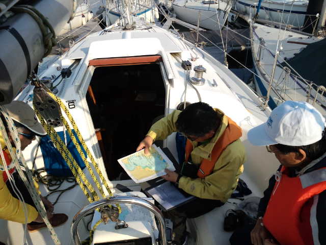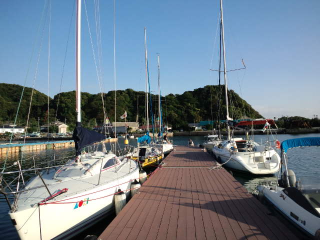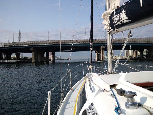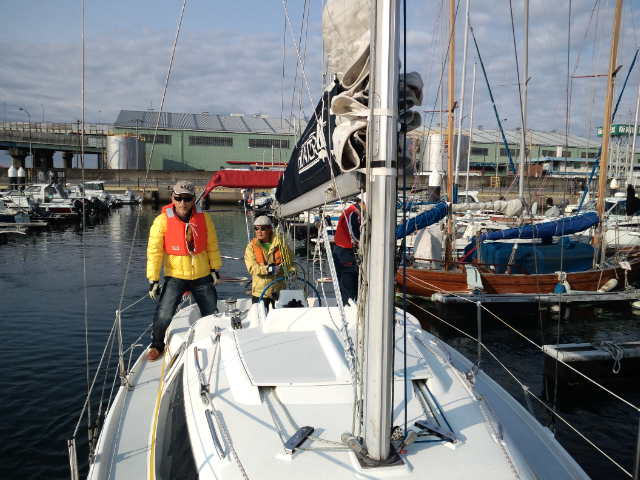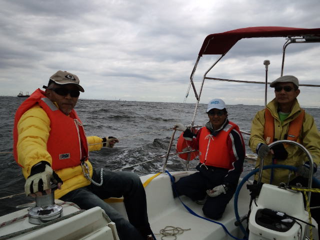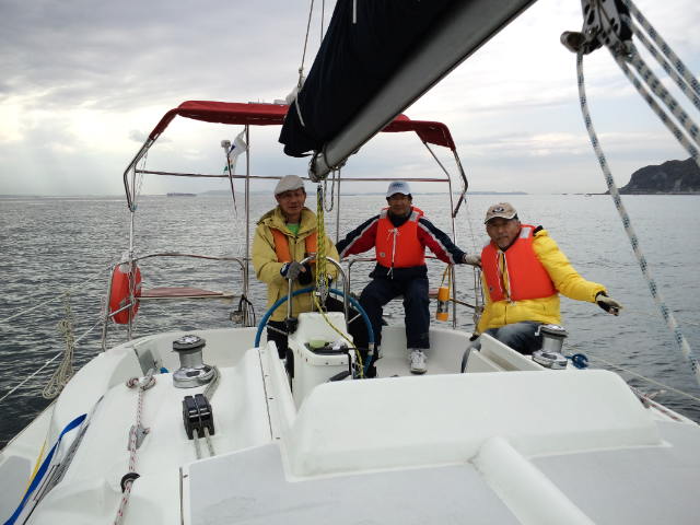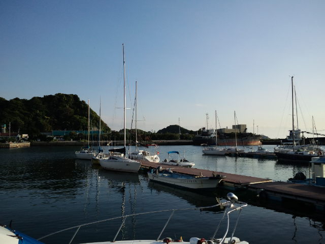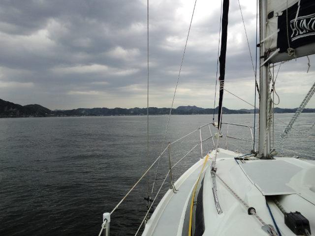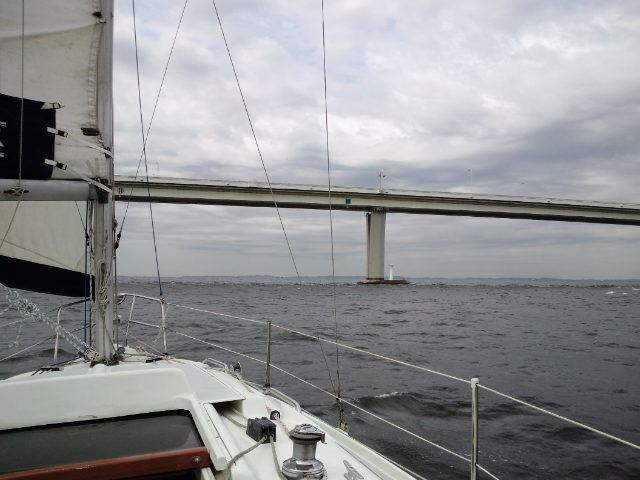 ハンター280/船橋から参加。06:30船橋ボートパークを出港、橋をくぐりセールアップ、予報では北寄りの風が10m/s近くなる見込み。バックステーが無くスゥェプトバックしたシュラウドで追っ手の風でメインを十分出せないリグのためメインは2ポンで揚げましたが平均5ノット越えで快走。09:00京葉シーバース横を通過、09:36東京湾アクアラインの橋をくぐり11:00富津沖を過ぎる頃には予報に反し風が弱まり11:30リーフ解除。富津岬の浅瀬を避け第2海堡手前で変針し浦賀水道航路に沿って南下。久里浜-金谷間のフェリーに注意しながら進み明鐘岬沖の定置網を避け、予定より1時間近く早く保田漁港に着きました。
