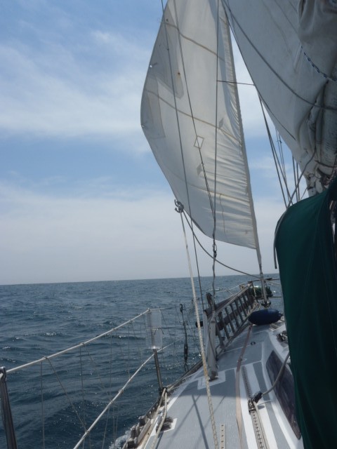波切港に進路を合せ そのうちセールも合ってきて半分は+6kt。