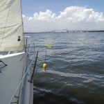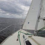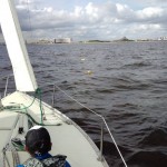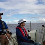 早速艇に向かい 艤装、出港しました。昨日より弱い風の中でセーリング実習と8の字救助法の実習を行いました。2日間を通し風の強さとその時々のセール選択の状況で艇の挙動が違うことを学んでいただけました。