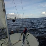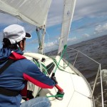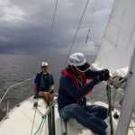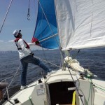 座学の後、艇に向い艤装、出港しました。昼前やや風が上がってきたので、練習のためジブチェンジとメインのリーフを実施。午後からリーフの解除をして各風位のセーリングと8の字救助法の実習を行いました。