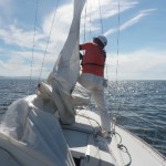 雨予報でしたが、大阪田尻は適度な雲に風。最高のヨット日和です。 今回の受講生の目標は「青木ヨットのレンタル艇で、関空一周セーリングができるように!」とのこと。 写真をご覧ください。ご準備から出港、操船・・・すべてお一人で頑張っていただきました。暑い中、お疲れ様でした。