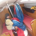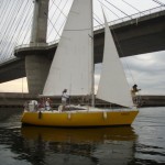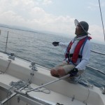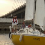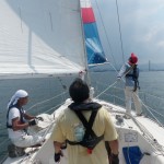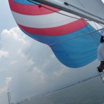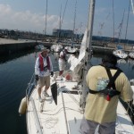 午前中は関空橋近くにある安全水域標識を利用してマーク回航のトレーニングを行いました。幸い標識の方向から風が吹いていたので、マーク回航後はスピンを揚げてのトレーニングが出来ました。