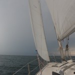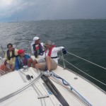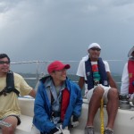 しかし、午後から出航して直ぐに、紀北で発生した積乱雲が非常に発達し、真っ黒い雲と雷を伴った激しい雨、突風と、目に見える形で田尻に向かってくるではありませんか!引き返して避難をするか、逆に沖出しをして迫って来る積乱雲から逃げるか、少し迷いましたが、せっかくのトレーニングなので、沖出しを選び突風の中、関空の南から西側に逃げながら、関空一周を行いました。本日、トレーニングに参加された方は非常に盛り沢山の、普段はあまり経験できないトレーニングとなりました。