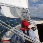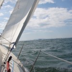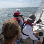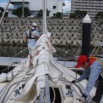 関東の天気は晴れ。風は南の風5m~7m。午前中は、帆走区域の説明と有利なレグについて、ミーティングを行いました。午後からはミーティングで話し合ったレグを実際に帆走しました。