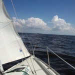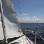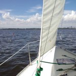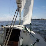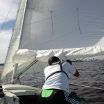天気は晴れ。風は5-10m/s。午後から南よりの風が少し強まる予報でした。出港準備をし出港。8の字救助法を繰り返し練習しました。予報どおり午後から風がやや強くなってきました。午前中より強い風とそれに合わせたセール選択の状態で8の字救助法を再開、艇の挙動の違いを感じていただきました。