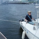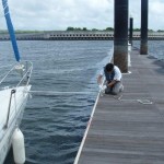 個人装備についての説明等の座学、出港準備を行いました。先ずはマリーナ内で機走での動きを体験します。 円を描くように舵をきっても、風に押し流されてしまいます。艇の動きになれたところで、帆走実習を行いました。