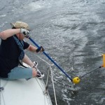 広いビジターバースを使って、離着岸練習を行いました。午後からは帆走実習と落水者救助実習を行いました。