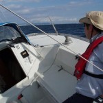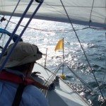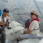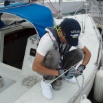 2日目は、午前中から帆走練習を行ないました。 各風位での操舵やタッキング・ジャイビングを交代で練習します。 お互いにスキッパーとして、クルーとして声をかけ合いながら手順を確認練習しました。 好天の日曜日とあって多くのヨットが帆走していたので、衝突回避航法を実践。 8の字救助法に備えて、ヒーブツーで休憩です。その8の字救助ですが、教習としては強めの風のなかで繰り返しました。