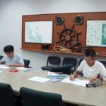 午前中の座学では、衝突回避航法や航路標識を勉強します。 お二人ともとても真剣で、ボート免許の時に使った教科書を見ながら勉強しました。 また、予習問題に出ていた標識については、三河湾の海図と照らし合わせて、海上実習の際に探してみることにしました。 昼休みの後、帆走準備をして離岸。ビジターバースで着岸練習後、セーリング実習を行いました。