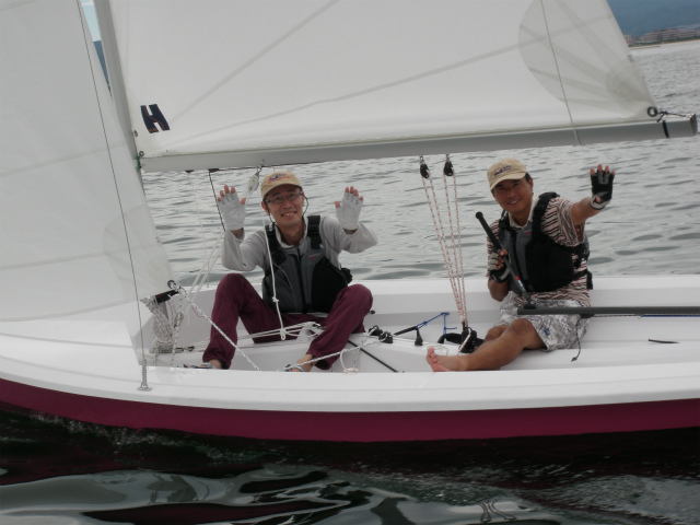 ほとんど風がない中でも、爽快にセーリングする勇姿。そして見事な安定感!!