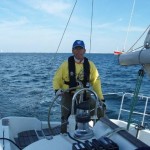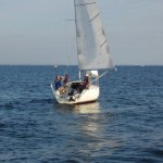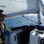 秋晴れに北寄りの風が吹き抜け、波のすくない絶好の帆走日和りです。 一人で乗艇するのが多いとのことなので、出来る限り自身で操作していただきました。 昼食休憩のためにヒーブツーを行ないましたが、ティラーではなくラット仕様なので、またまた戸惑いです。 これもまた、タッキングやジャイビングと同様に回数をこなして慣れるしかないですね。