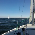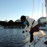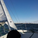 天気は晴れ。風はNNW-8~N-10m/s。マリーナは、黄旗で出港注意です。 午前中は、クラブハウス2Fで座学。その後、艇に移動して出港準備、セールのセットとバッキング、フレーキングをしてから離着岸の際のクルーワークの練習を行いました。 午後からは出港してセーリングです。クロスホールドとタッキングの練習を行いました。 Basic Crewコースは、クルーワークの為のコースですが、せっかくなのでヘルムスマンも経験して頂きました。