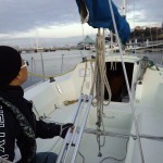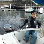 朝から冷たい雨、低気圧と前線が通過する午後には晴れる予報の中、午前中は座学、予習問題の解説と安全装備の解説を実施しました。携帯で雨雲レーダーを確認すると午後1時半ころには雨が上がる見込みのため、艇に移動して実技。船外機の扱いが初めてのためスロットルの調節、前後進の切り替えもとまどいながらの操船、受講者1名のため繰り返し練習して慣れていただきました。その後着岸のアプローチを左舷着岸、右舷着岸それぞれ練習。日没に合わせて実技終了しました。