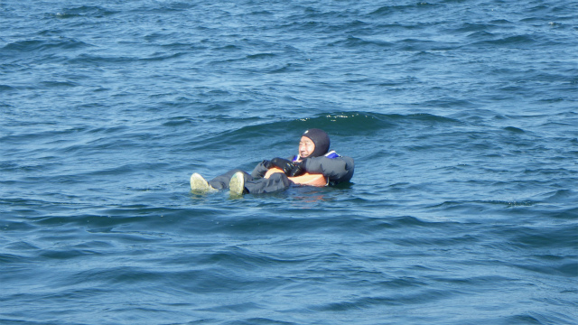 真冬の海で行った、落水者救助デモンストレーション。貴重な落水者目線(海から)の写真を掲載いたします。