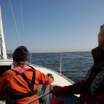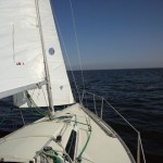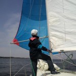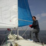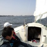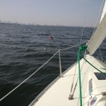 セーリングでの8の字救助法の説明をして早速出港準備を行いました。ジブチェンジの練習でジェノアに交換してからヒーブツーで昼食休憩をとりました。午後からは、セーリングでの8の字救助法の練習、途中風が強まりジェノアからレギュラーにジブチェンジ。ワンポイントリーフの練習もして、最後は荒川河口までポジション交代しながらリーチングでジャイブの練習を行いました。帰港してから離着岸の復習を行いました。
