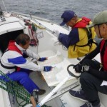 横須賀から出港し、目的港は保田港です。 台風の影響により、2日ともあいにくの雨空でした。1日目は濃霧で陸地がまったく見えません。針路を確認しながら保田港へ無事入港。2日目は、濃霧に加え風向きが悪く、本船の影を確認しながら、無事横須賀へ入港。 受講生の皆さん、お疲れ様でした。