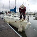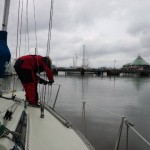 天候は雨のちくもり。風はN-4~ENE-6m/s。 本日は午後まで梅雨空の予報。オイルスキンが必要な空模様です。 午前中は低体温症と落水者救助法の説明をしてから艇に移動して出港準備。午前中は基本の離着岸と風上前進離岸法の復習とその場回頭の練習に時間を割きました。午後からは落水者救助法の練習。両タックのクロスホールドで落水した想定で交互に練習して帰港。卒業テストは高得点で合格されました。