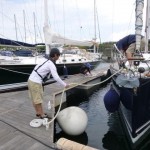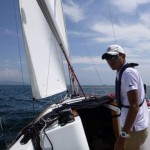 天候は晴れ。風はS-6m/s。 自艇を使ってのトレーニングです。ヨットのオーナー様とクルーの方々が一緒に受講されました。自艇での教習なので、今までの経験と比較して、安全な操作が理解できたし、操作の手順を勉強してからなので、落ち着いて作業できたとご好評を頂きました。
