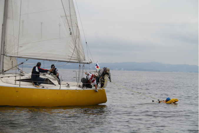今回も熱心なディスカッションを行いました。また、落水者救助デモンストレーションでは、実際に人間が落水し、救助する実地訓練を行いました。今回の青木ヨットスクールインストラクター会議・落水者救助デモについて、雑誌Kazi12月(11月5日発売)号に掲載される予定です。ぜひそちらもご覧くださいませ。