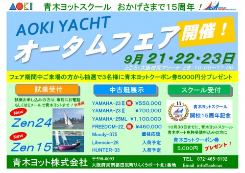 青木ヨットスクール15周年記念・中古ヨット展示会+Zen24、Zen15試乗会
