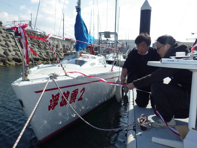 午前中は納艇セレモニーを行いました。天候も良く、納艇日和です。今から早速セーリング!いざ出港!