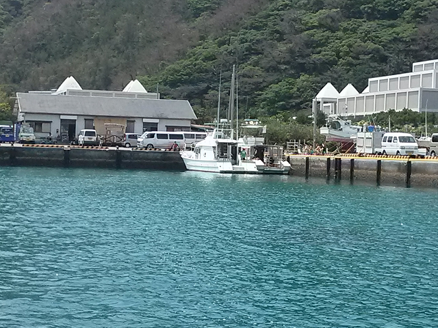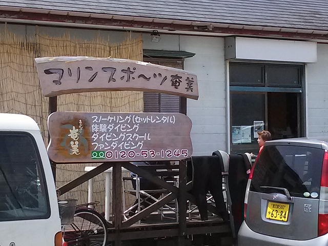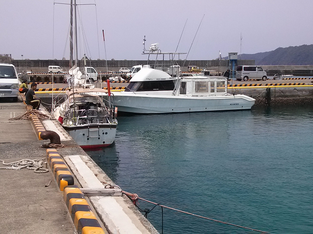 1040時、名瀬港へ入港して、すぐ西側の小港へはいる。ダイビングショップの前だ。聞いてみると、横付けしても大丈夫とのことだ。ダイビングショップのキッチンに、おばさんがいる。おそるおそる聞いてみた。