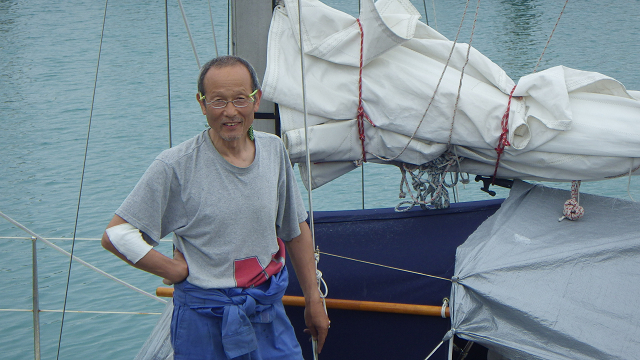 朝になってゲストバースへ移動する。桟橋の上で、お互いに顔を見合わせて驚く。「なるふ」の内田さんではないか。内田さんは青木ヨットスクールの卒業生だ。当社から購入いただいたヨットで、千葉から一人で航海してきたという。宜野湾には1日前に到着したとのことだ。