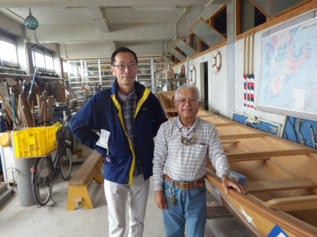 日程に1日余裕が出来たので、比嘉さんの車に乗せて頂いて、皆で糸満へ行くことにした。まず友人の崎山さんと待ち合わせて、糸満海人工房へ行く。上原謙さんが、自宅で開設していた博物館を、公的な場所へ移設して、現在はサバニ博物館として公開している。サバニの展示が主体だが、船体だけではなく、付属品や漁具まで展示して、使い方がわかるようになっているので面白い。博物館には、大城清さんのサバニ造船所が併設されている。清さんは代々続くサバニ大工だ。40年近く前にサバニ「おもろ」を、千葉の織本さんのために建造した。「おもろ」は横山晃先生が、船型を詳細に分析して、和船の船型と比較したデータとともに、その特性を舵誌上で発表している。