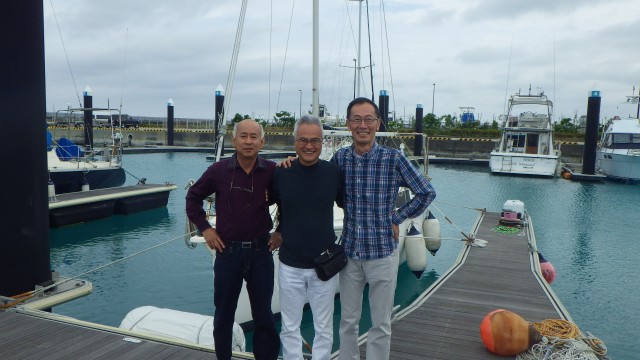 糸満フィッシャリーナには、EAST MARINEの西野さんと極楽蜻蛉の牧野さんとが、停泊している。お二人とも信天翁24で長距離を回航して、今は沖縄住民だ。久しぶりの再会だ。皆で沖縄そばを食べに行く。そば屋は崎山さんの一声で決まった。百美(ひゃくび)だ。立派な沖縄風庭園の縁側に坐り、三枚肉そばを食べる。痛めた腰も、少しましになったようだ。このまま帰らないで、ずーと糸満に居たいものだ、ふと思ってしまう。