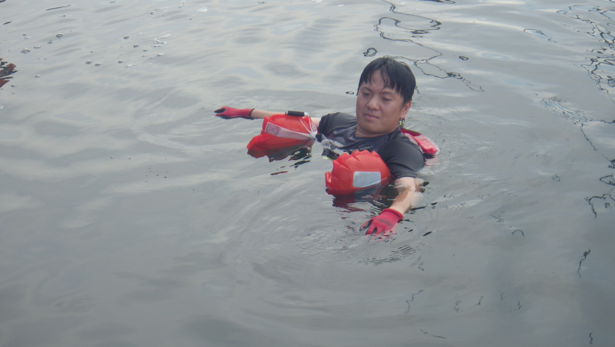 安全講習会では、海上での安全についてやライフジャケットの実演会がありました。