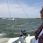 メインセールを縮帆しても飛沫を浴びてしまいました。