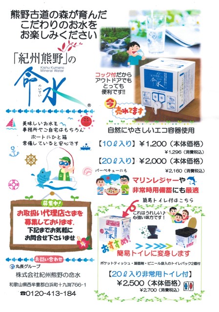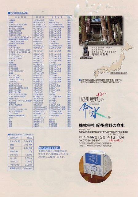 先日、たなべ・うちのうら海の駅様より、「紀州熊野」の命水のサンプルが届きました。