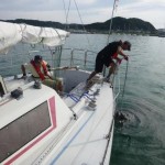2泊3日のBCCは、秋晴れの穏やかなクルージングでした。 航海計画を立て、帆走を実施するも、計画航路からは当然ズレてしまいます。 船上では風の変化を読み、船位測量をして、海図で検討します。 縮帆練習や落水者救助訓練をやりながら、到着した港では槍着け係留です。 良い笑顔ですね!