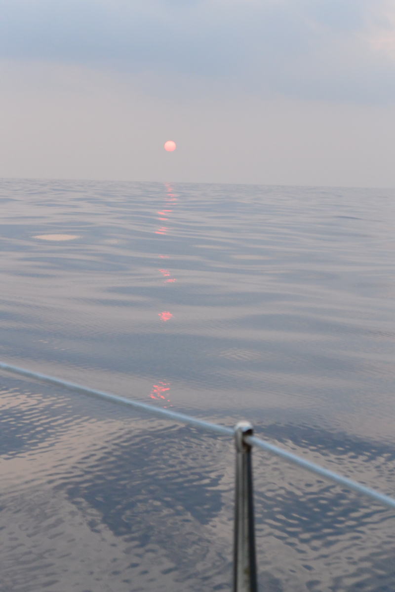 出航した夜は中秋の名月を楽しみ、9日の夕方は油を流したような海面に雲が映るのを眺め、11日は石垣島の北端平久保崎を回って無風になったので御神埼沖で水浴びをして涼をとり疲れを癒しました。