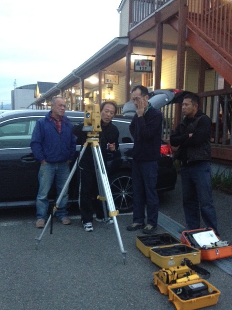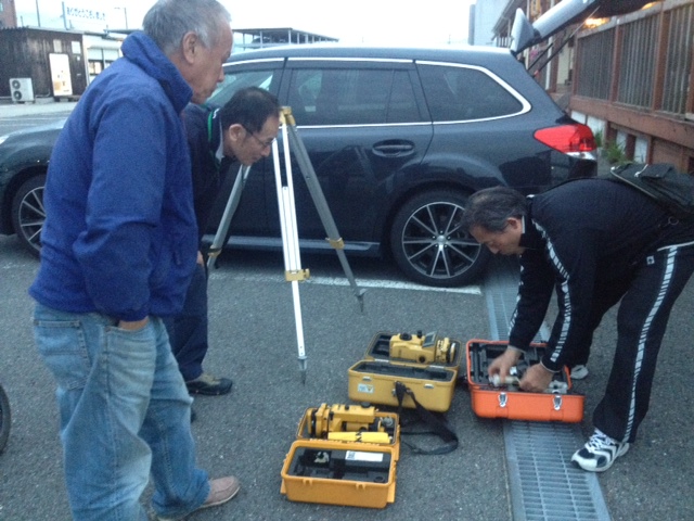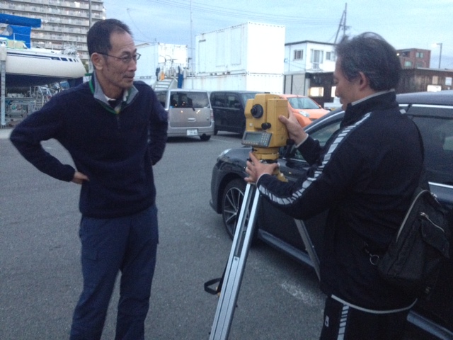 今日のヨットスクールの受講生は、測量士さんだ。終了後に、測量機器の実演をしてもらう。原理は天文航法に使用する六分儀と同じようだ。太陽の南中高度も測定できるという。望遠鏡の倍率が大きく、レンズも明るいので、遠くの建物が実によく見える。