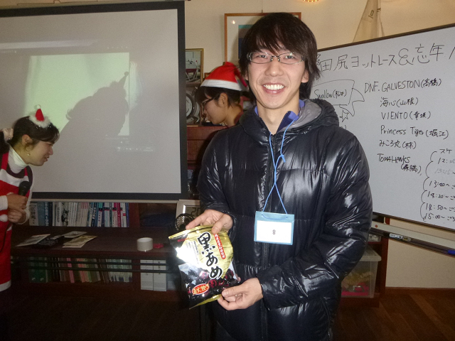 Gillの帽子やソックス、数の子、お酒などが景品でした。