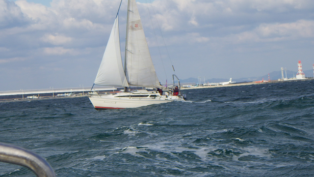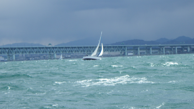 当日、風速10m以上の強風に見舞われる田尻マリーナ。