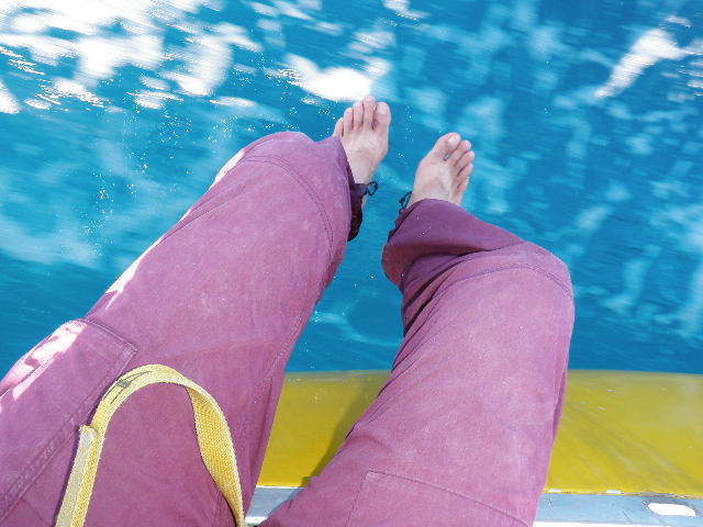9月21日1100時、奄美大島名瀬港出港。3時間の短い休息だった。半日遅れの入港であったので、予約してあったホテルは、キャンセルした。しかし係留場所のすぐ前にあったダイビングショップのご厚意で、全員がシャワーを浴びることができた。疲れはほぼ回復して、元気に出港する。果物と食料もたっぷりと積み込んだ。