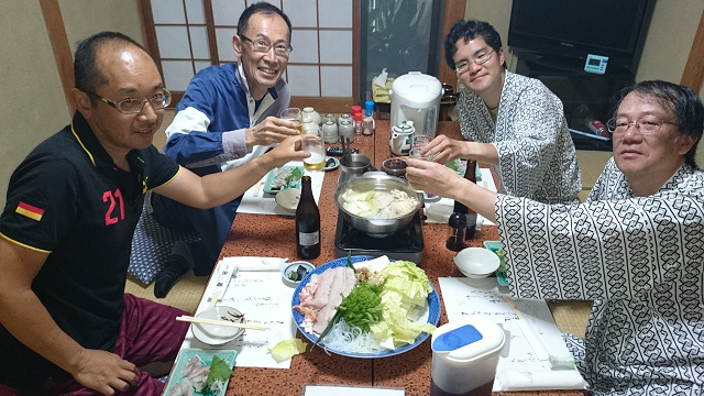 予定通り、洲本沖ブイを確認して変針する。由良港の入り口がわかりにくいが、入港後はアンカリングの実習だ。民宿では鱧すきがたっぷりと待っていた。