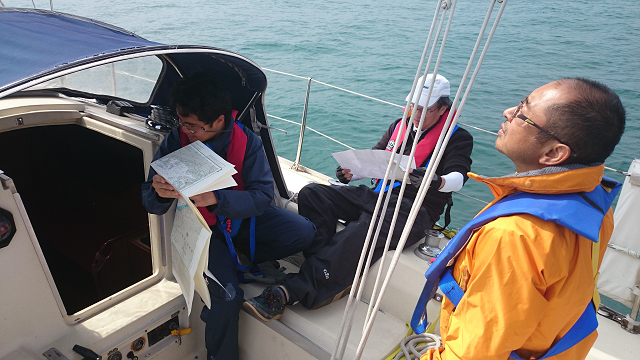 5月23日と24日の二日間、田尻マリーナから淡路市由良港までの往復航海を行った。BCCコースはセーリング技術はもちろん、航海中の位置決定技術の習得が課題だ。