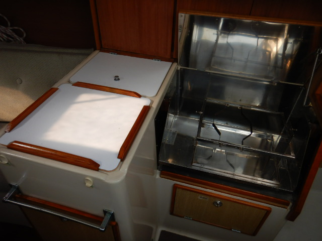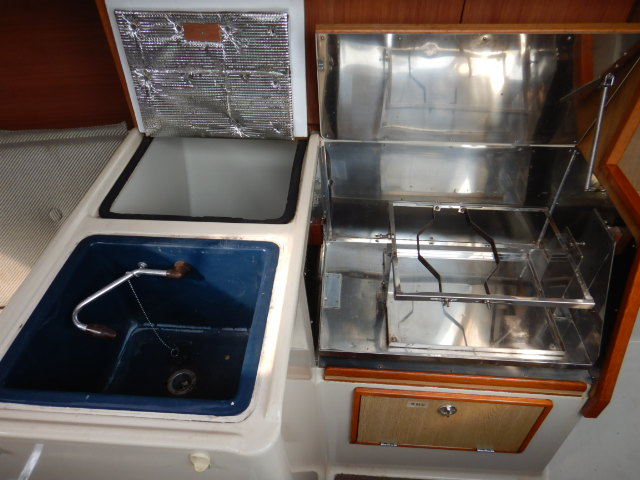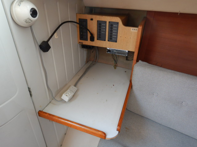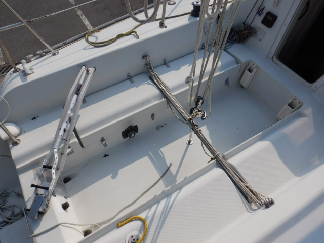 ジブファーラー、シンク、個室マリントイレ、航海灯、ブームバング、スイミングラダー、マリンコンパス、ソーラーパネル、チャートテーブル、シングルハンドで操船可