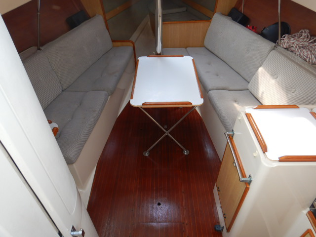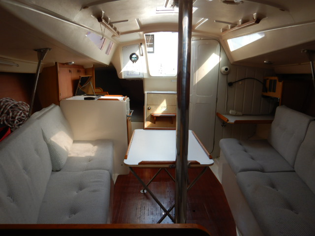 艇の特徴と装備・・・・木目を基調とした落ち着いた雰囲気のキャビン。ファミリーセーリングに最適な艇です。