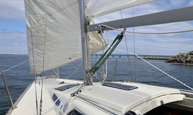 BCC(Basic Coastal Cruising)の目標は、「30フィートくらいの中型ヨットのスキッパーとして、安全に2・3日間のクルージングを実行できるようになること。」です。東京校では、横浜港ハンマーヘッドへの航海を実践します。このルートは帆走技術のみならず、多数の航路標識を理解して、輻輳する大型商船をやり過ごす必要があります。それらをクリアしながら順調に進んでいたのですが・・・