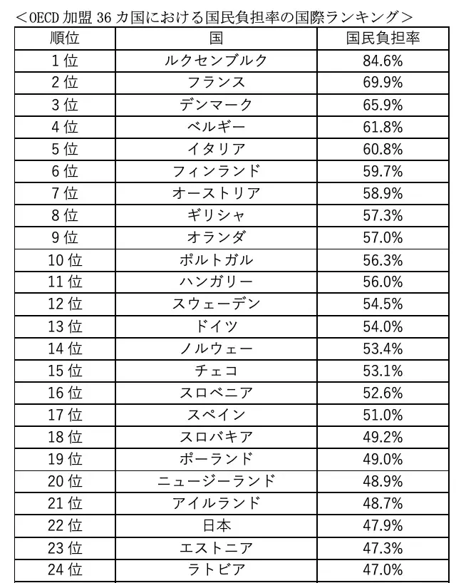 2024年度の国民負担率は45・1%で、収入の半分近くが税金である。負担率の高さは世界22位とのことさらに読む