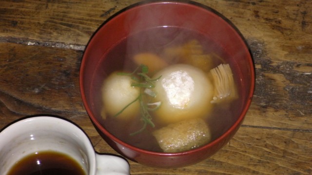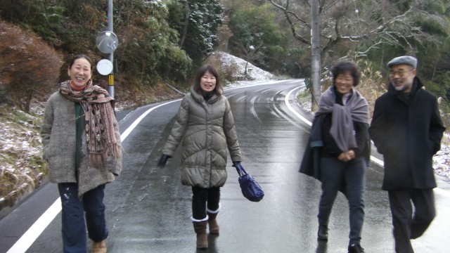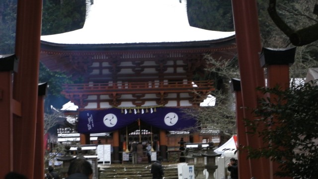 2日の朝は皆でそろって、近くの丹生都比売神社へ初詣に行く。雪の残る中を30分ほど散歩だ。願い事をした後は、おみくじを引く。3回目でようやく、中吉がでた。境内の茶店でぜんざいを食べる。えらく小豆が少ない。手作りこんにゃくを買って、帰途につく。