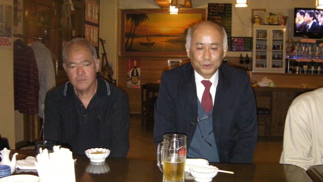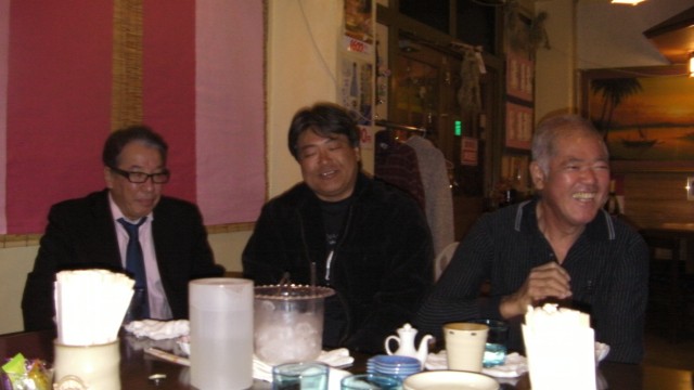 レンタカー会社へ立ち寄り、糸満フィッシャリーナへ行く。次は居酒屋ゆうなへ集合だ。豊さんを始め、崎山さん、下門さん、名城さん、牧野さんが待ってくれていた。挨拶と口上を述べてから、酒盛りが始まる。見なれないスーツにネクタイ姿なのは、正月だからだ。