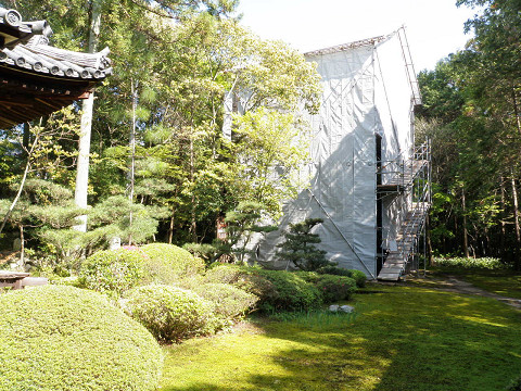 国宝である多宝塔は、屋根の葺き替え工事中だ。シートに覆われている。重文の金堂を二周して、十分に拝観させていただく。Fuuさんは、古い建物がとてもすきとのこと。写真を撮りまくっている。